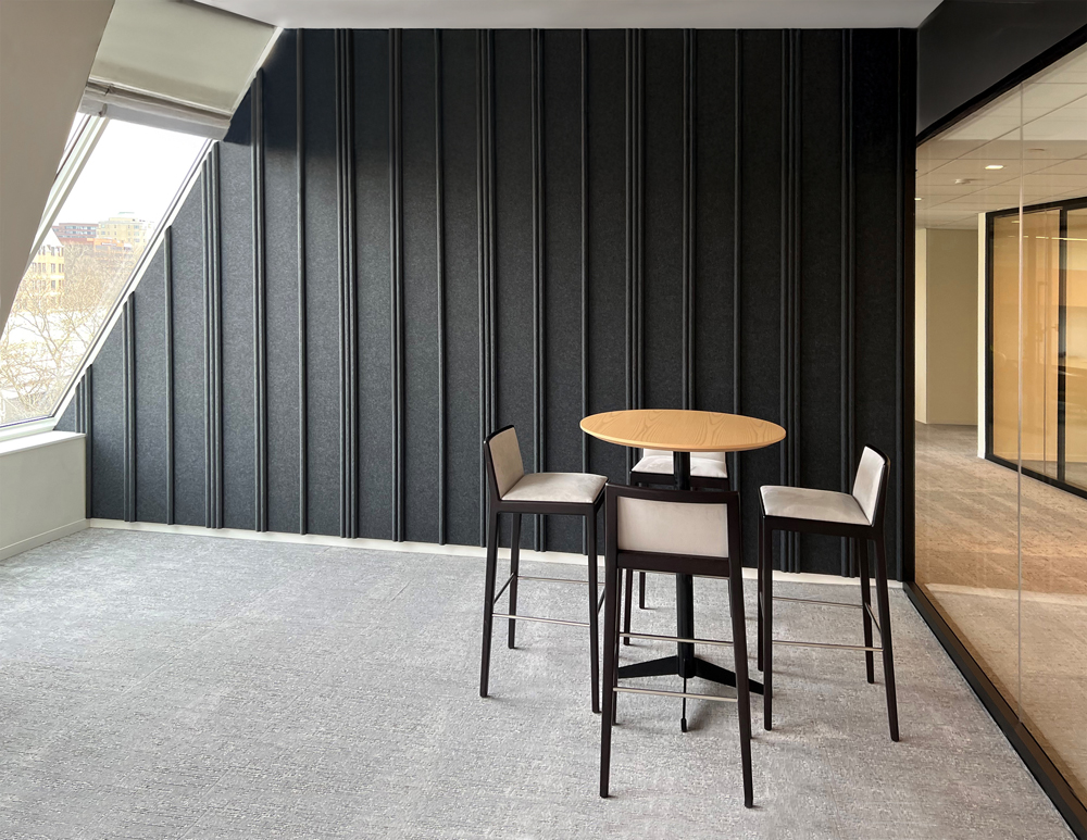 Novaform Sagano introduces an elegant, fabric-wrapped foam bolster system designed for both refined aesthetics and superior acoustic performance. A blend of straight, diagonal, or bevel-cut profiles and a variety of foam depths enables the creation of a myriad of dynamic linear patterns.